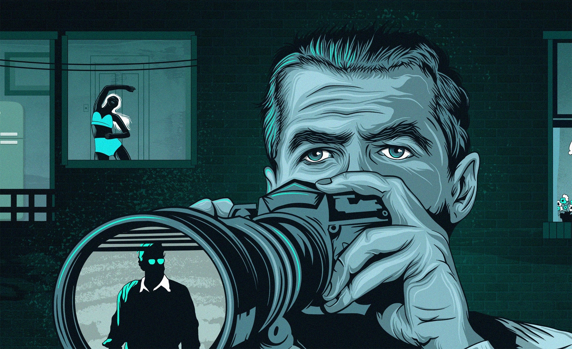 Hello, there! This Rear Window inspired print is my original artwork, digitally drawn using Pro Create and Photoshop. This open edition piece is printed using 8 colour print on high quality satin 200gsm paper available in various sizes.