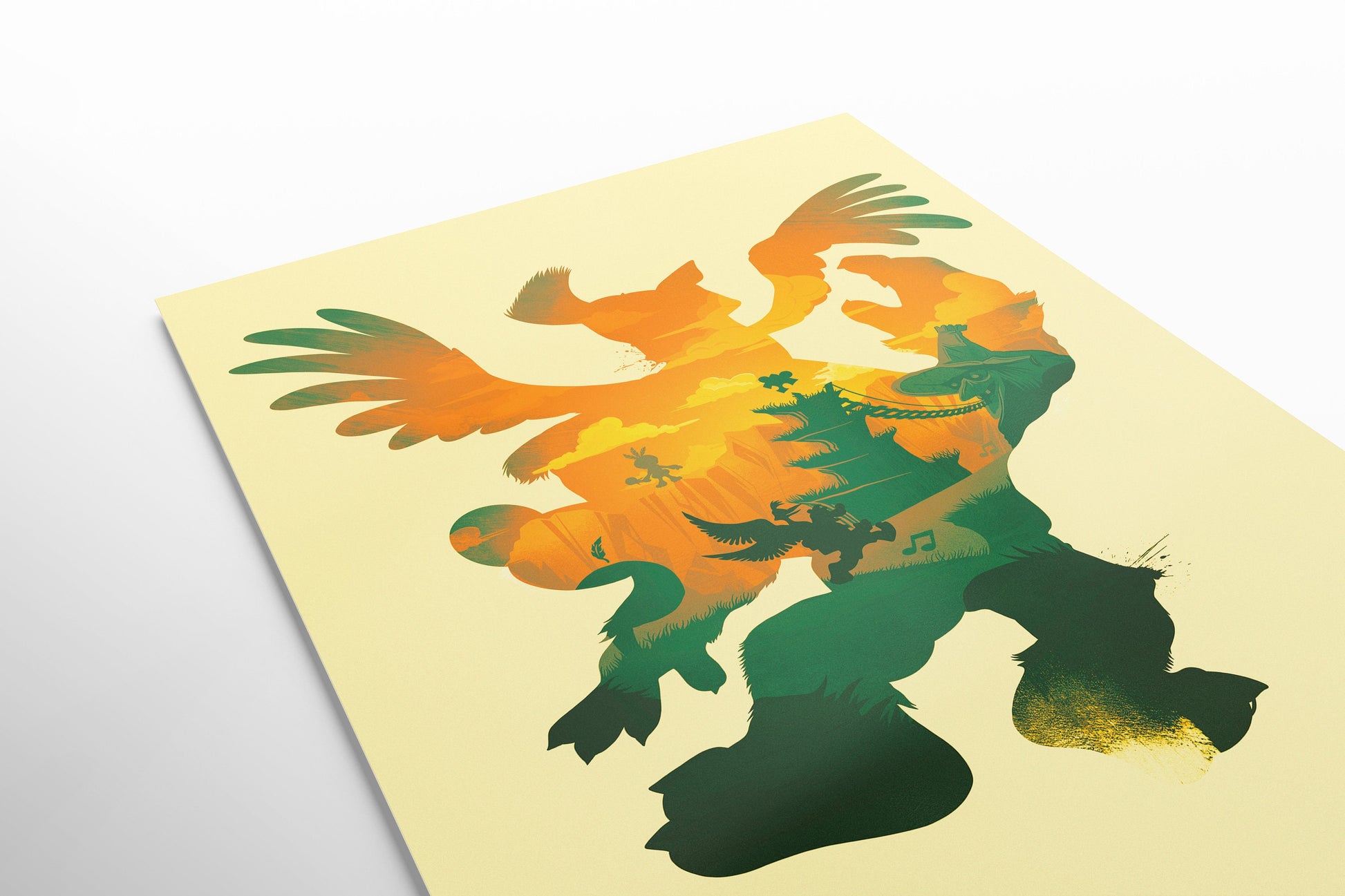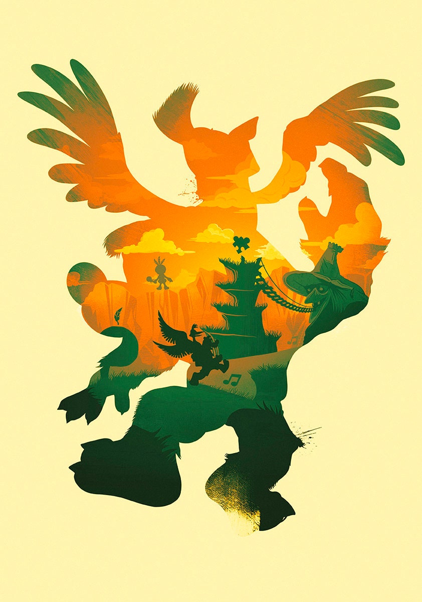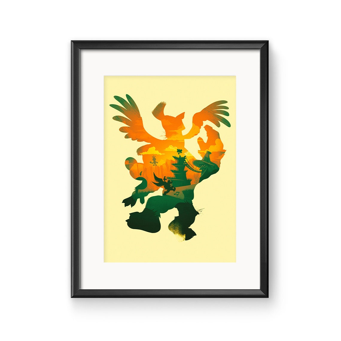 Hello, there! This Banjo Kazooie inspired print is my original artwork, digitally drawn using Pro Create and Photoshop. This open edition piece is printed using 8 colour print on high quality satin 200gsm paper available in various sizes.