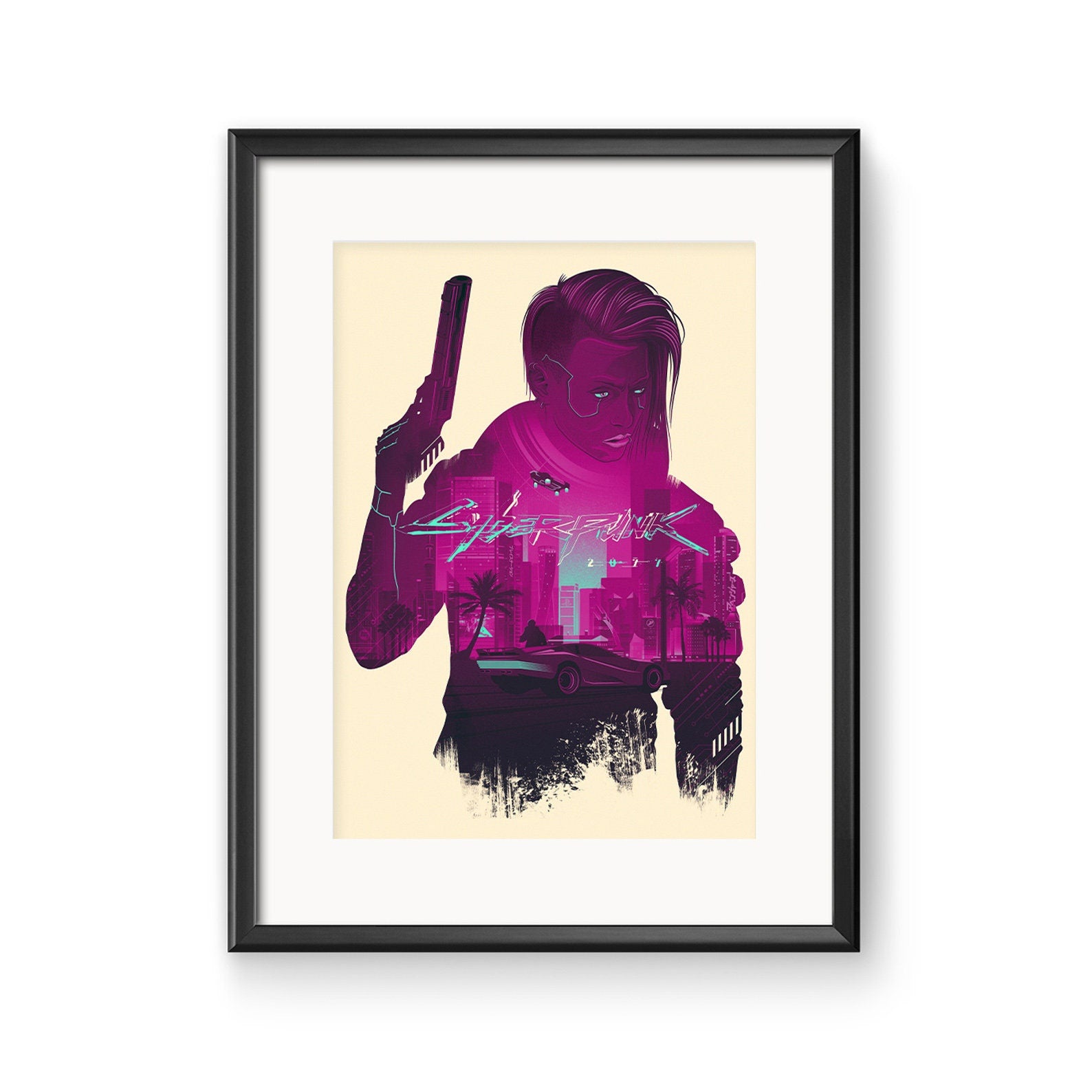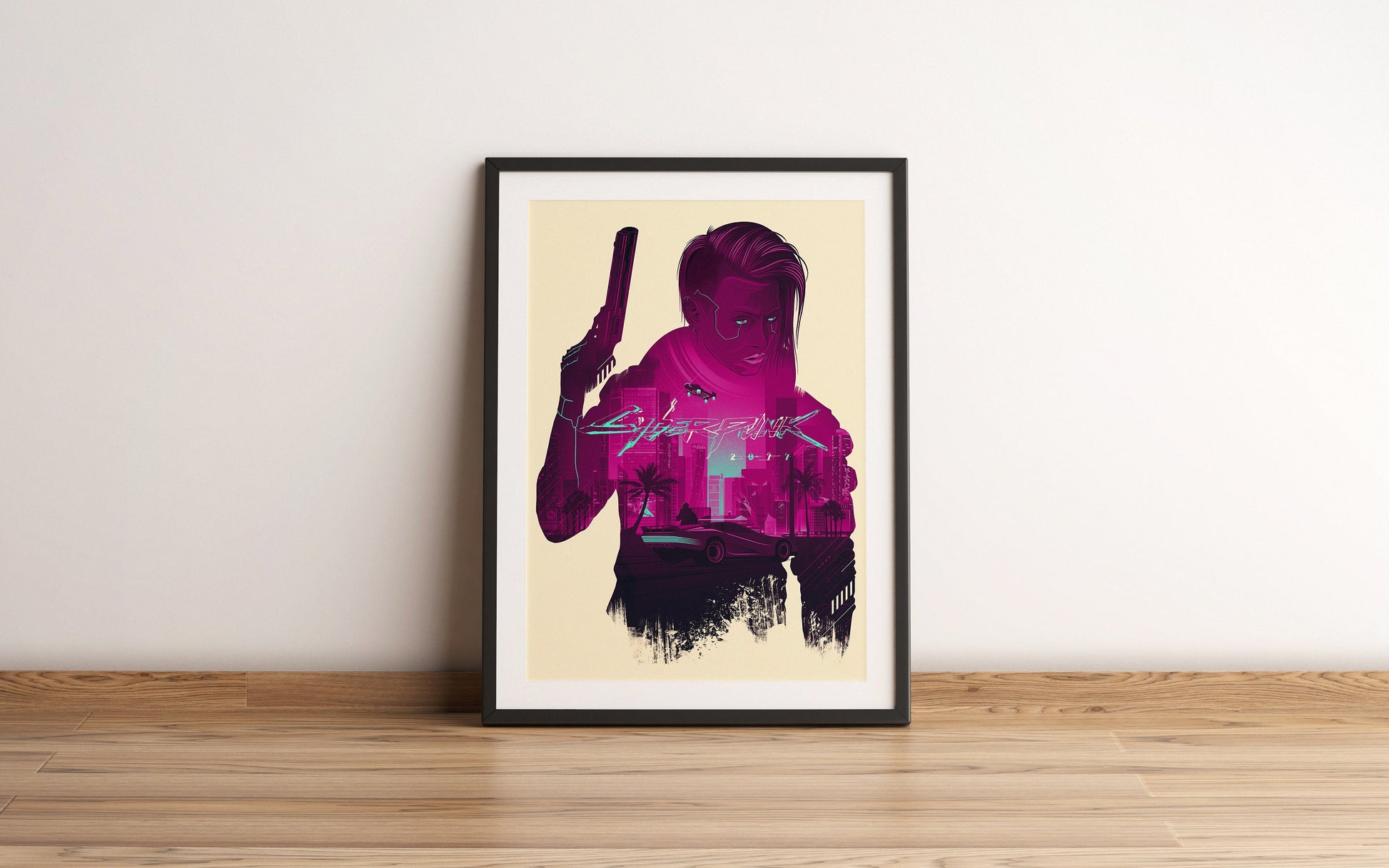 Hello, there! This Cyberpunk 2077 inspired print is my original artwork, digitally drawn using Pro Create and Photoshop. This open edition piece is printed using 8 colour print on high quality satin 200gsm paper available in various sizes.