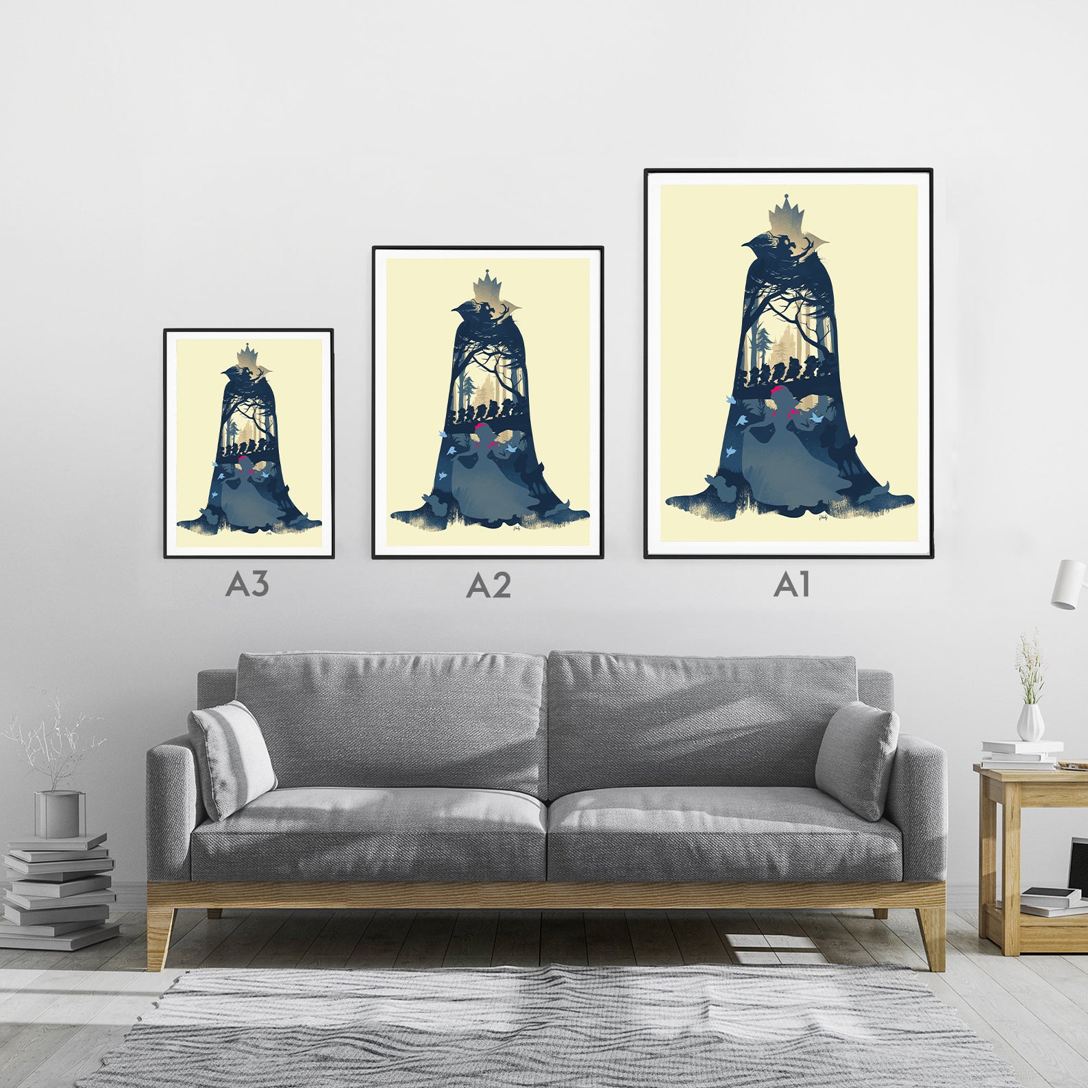 Hello, there! This Disney Snow White print is my original artwork, digitally drawn using Pro Create and Photoshop. This open edition piece is printed using 8 colour print on high quality satin 200gsm paper available in various sizes.