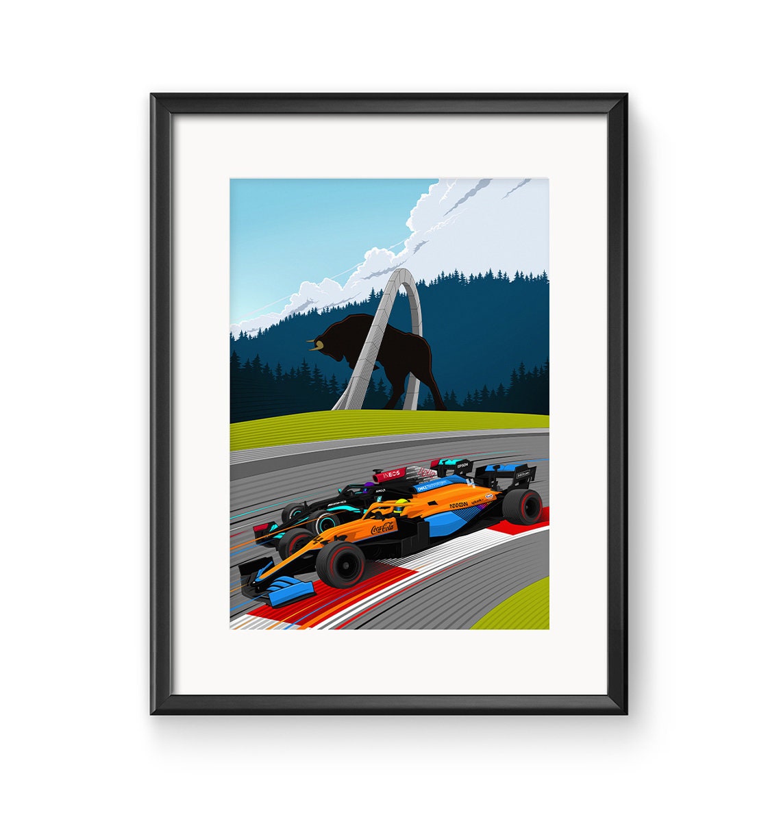 Hello, there! This F1 inspired print is my original artwork, digitally drawn using Pro Create and Photoshop. This open edition piece is printed using 8 colour print on high quality satin 200gsm paper available in various sizes.