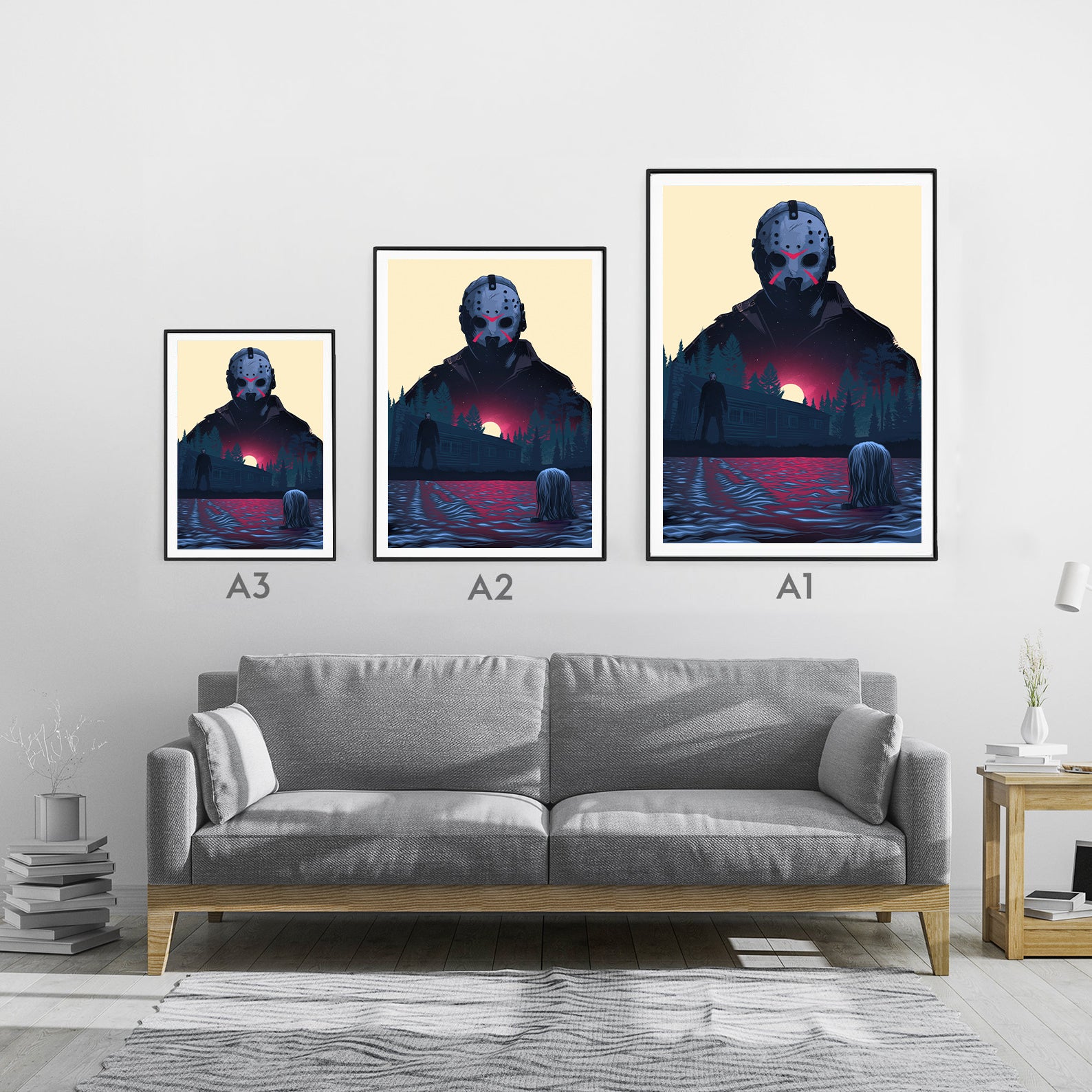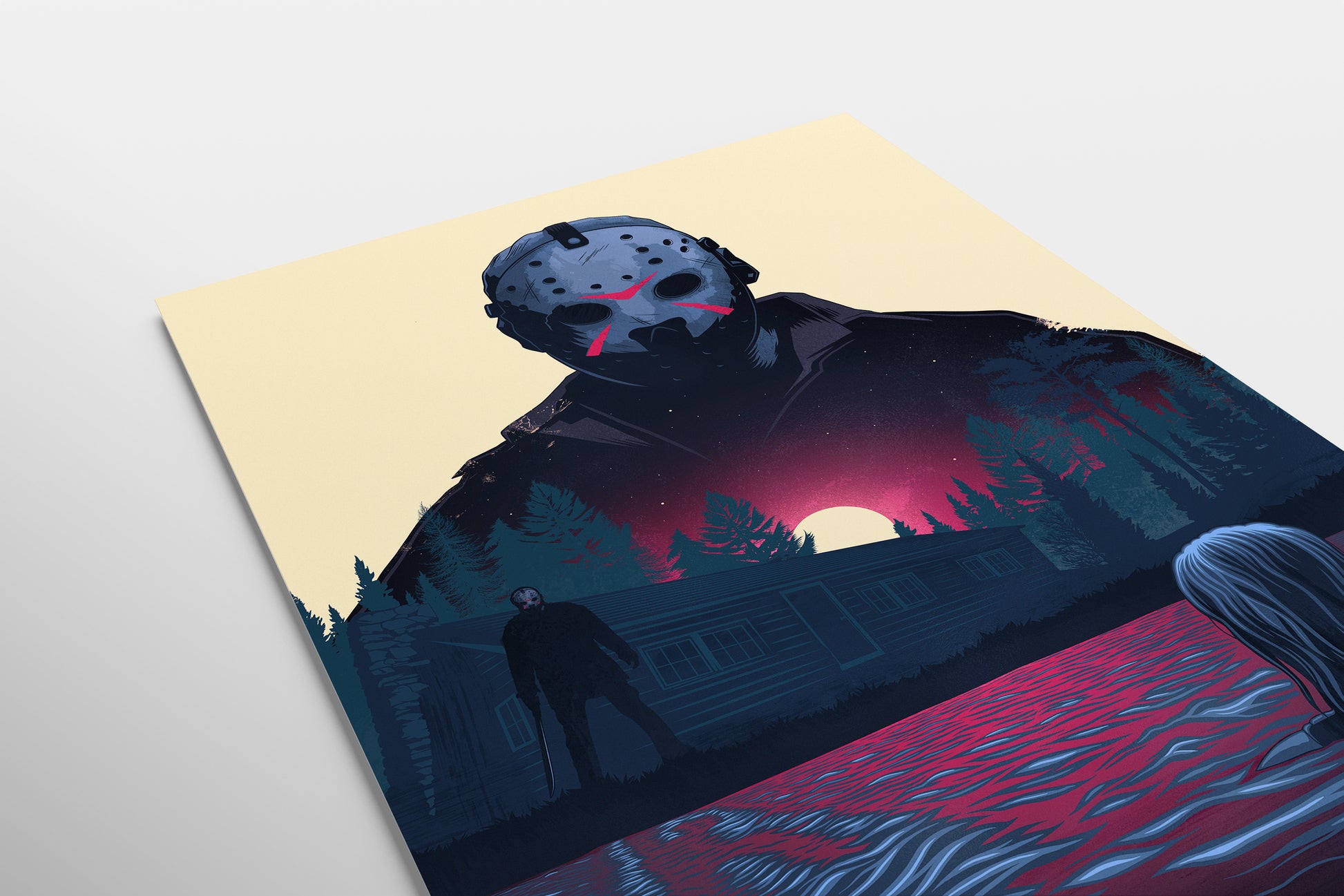 Hello, there! This Friday The 13th print is my original artwork, digitally drawn using Pro Create and Photoshop. This open edition piece is printed using 8 colour print on high quality satin 200gsm paper available in various sizes.