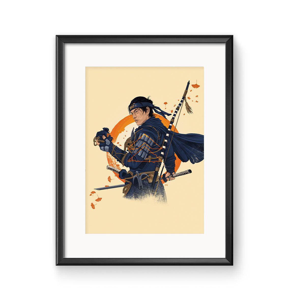 Hello, there! This Ghost Of Tsushima print is my original artwork, digitally drawn using Pro Create and Photoshop. This open edition piece is printed using 8 colour print on high quality satin 200gsm paper available in various sizes.