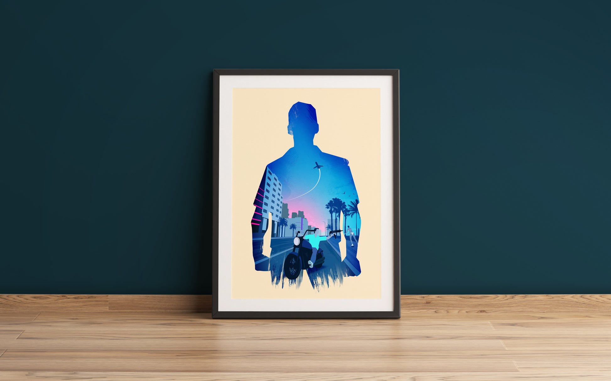 Hello, there! These Grand Theft Auto inspired print is my original artwork, digitally drawn using Pro Create and Photoshop. This open edition piece is printed using 8 colour print on high quality satin 200gsm paper available in various sizes.