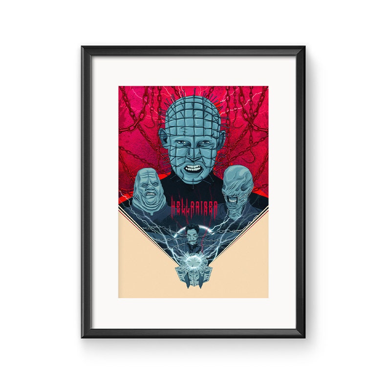 Hello, there! This Hell Raiser print is my original artwork, digitally drawn using Pro Create and Photoshop. This open edition piece is printed using 8 colour print on high quality satin 200gsm paper available in various sizes.