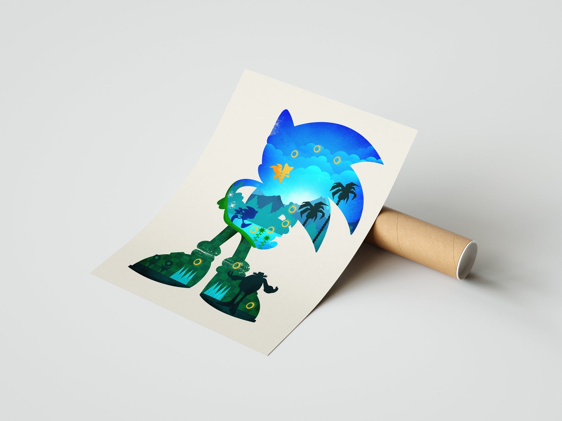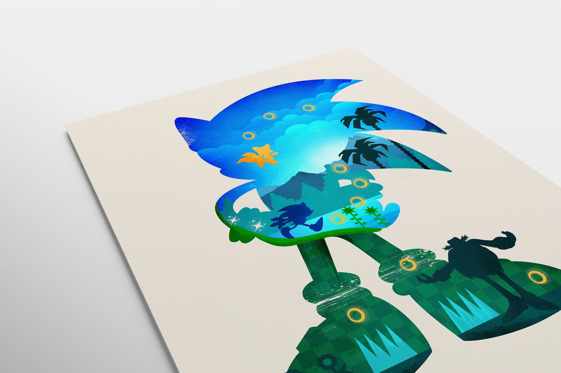Hello, there! This Sonic inspired print is my original artwork, digitally drawn using Pro Create and Photoshop. This open edition piece is printed using 8 colour print on high quality satin 200gsm paper available in various sizes.