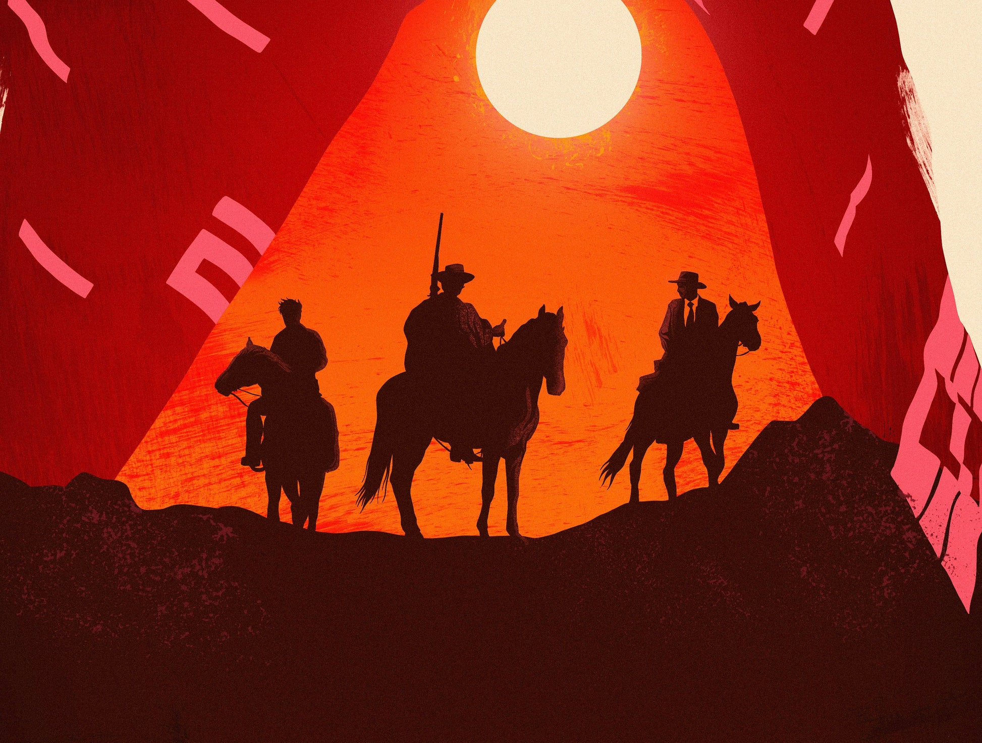 Hello, there! These Spaghetti Western inspired prints are my original artwork, digitally drawn using Pro Create and Photoshop. These open edition pieces are printed using 8 colour print on high quality satin 200gsm paper available in various sizes.