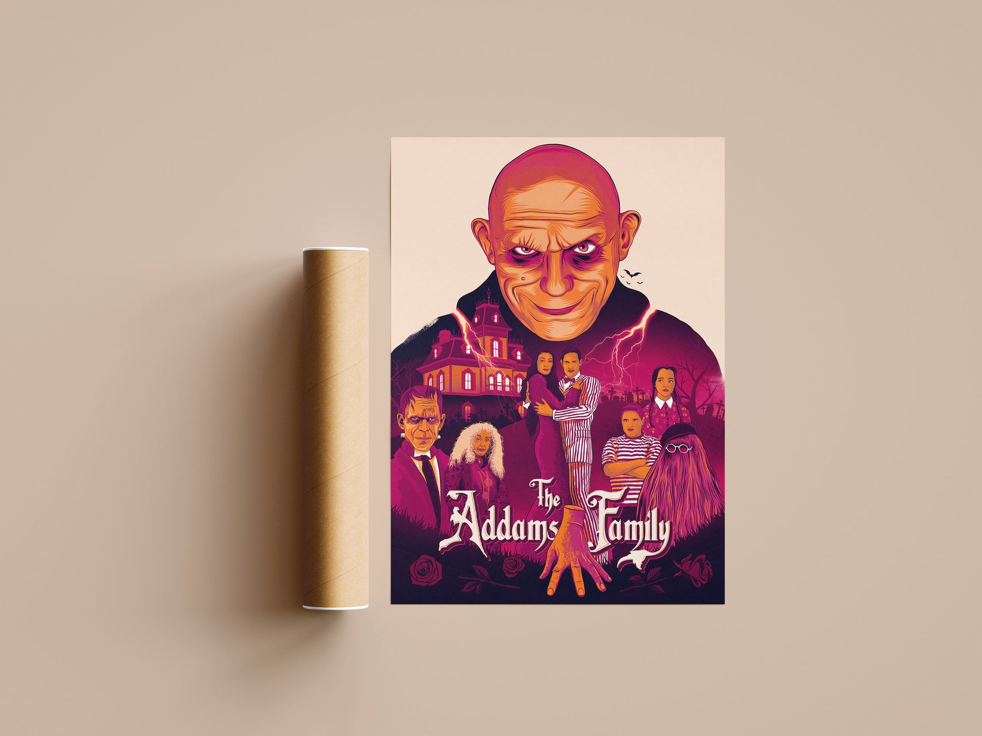 Hello, there! This Addams Family print is my original artwork, digitally drawn using Pro Create and Photoshop. This open edition piece is printed using 8 colour print on high quality satin 200gsm paper available in various sizes.