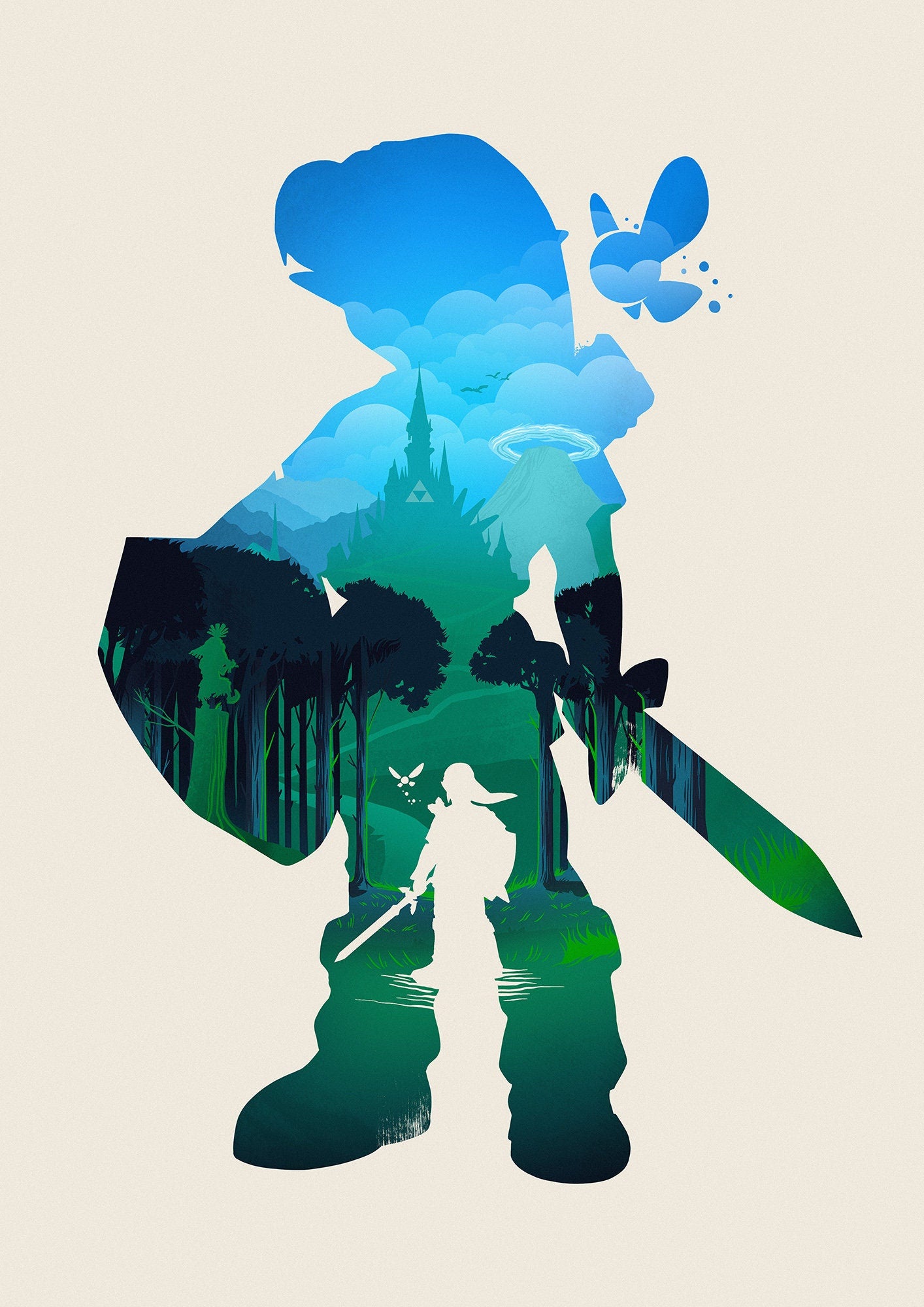 Hello, there! This Zelda inspired print is my original artwork, digitally drawn using Pro Create and Photoshop. This open edition piece is printed using 8 colour print on high quality satin 200gsm paper available in various sizes.