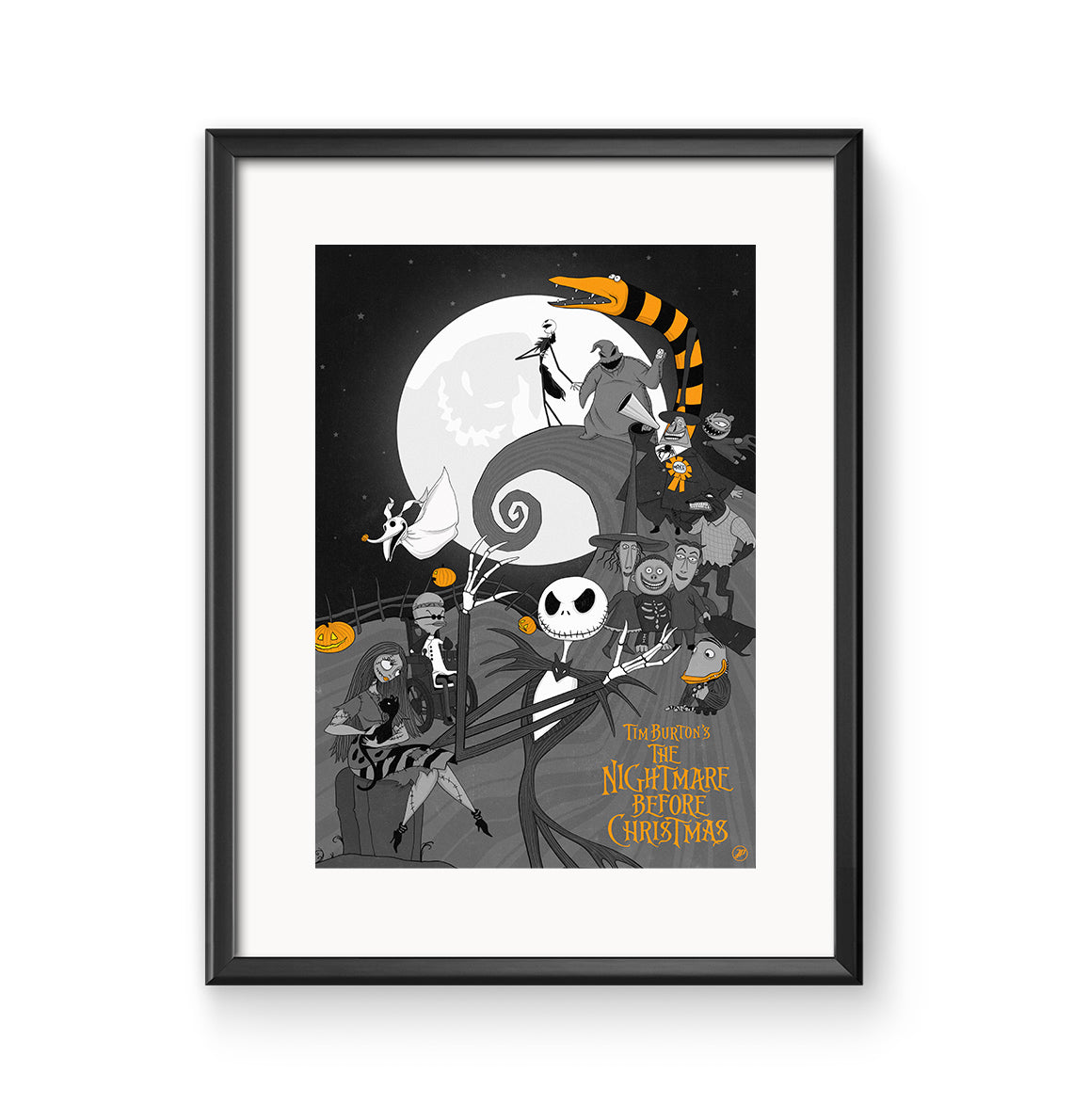 Hello, there! This Nightmare Before Christmas print is my original artwork, digitally drawn using Pro Create and Photoshop. This open edition piece is printed using 8 colour print on high quality satin 200gsm paper available in various sizes.