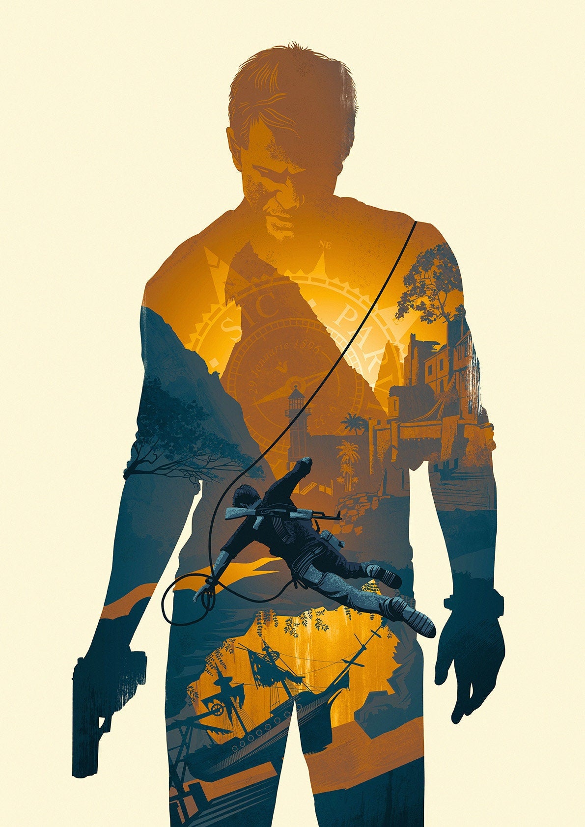 Hello, there! This Uncharted inspired print is my original artwork, digitally drawn using Pro Create and Photoshop. This open edition piece is printed using 8 colour print on high quality satin 200gsm paper available in various sizes.